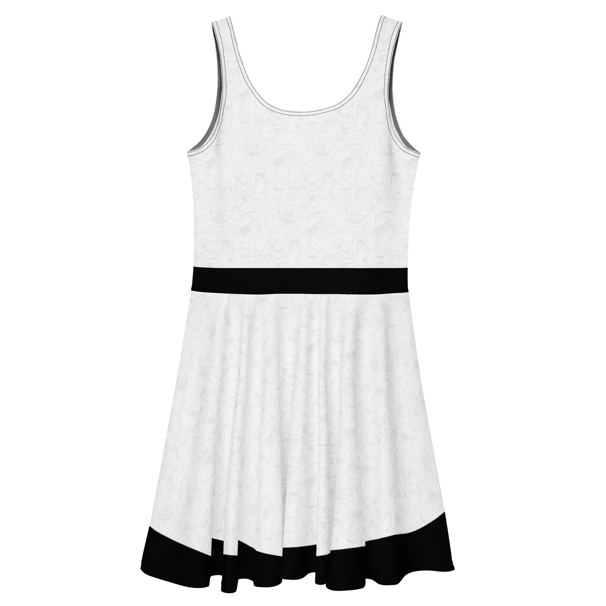 Dress to impress with this sleeveless skater dress! The soft fabric and flared skirt give it an elegant twist that brings out the intricate design with a beautiful vibrancy. Represent your favorite trio with this skater dress and be sure to peep the details up close or you might miss it!