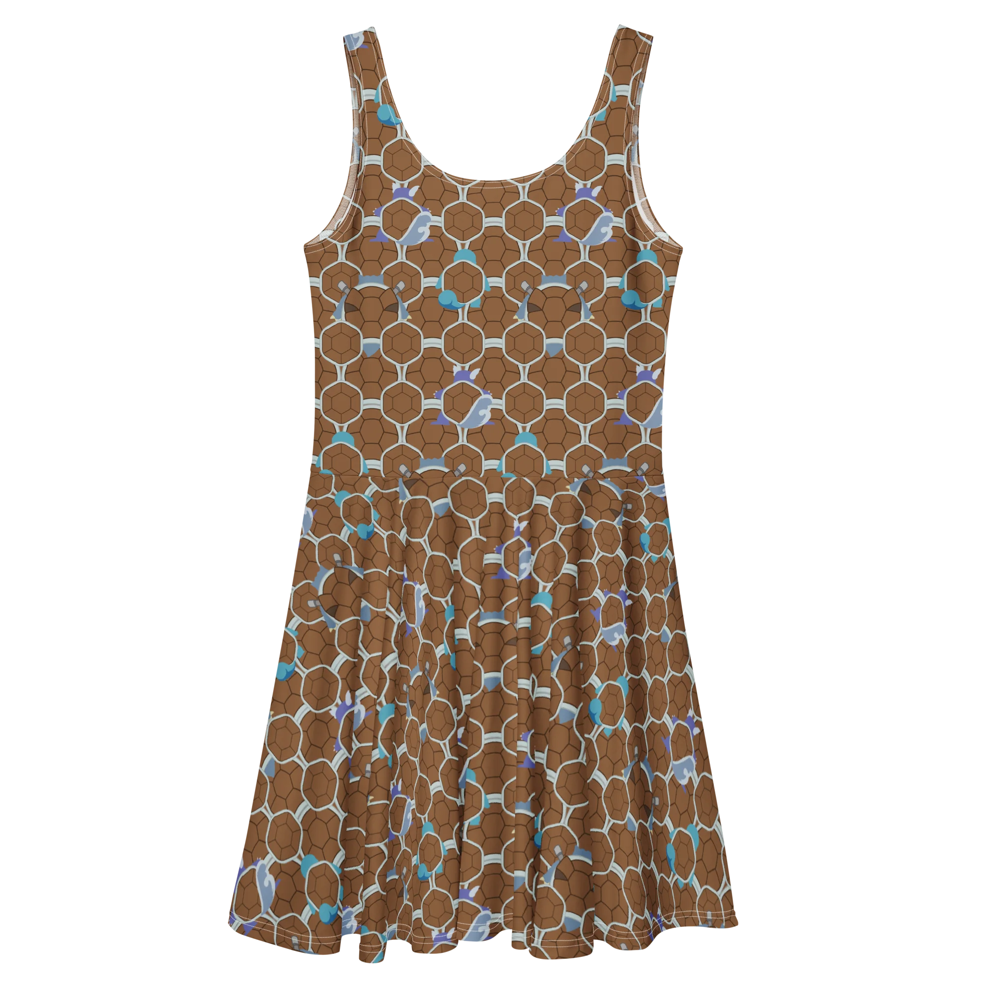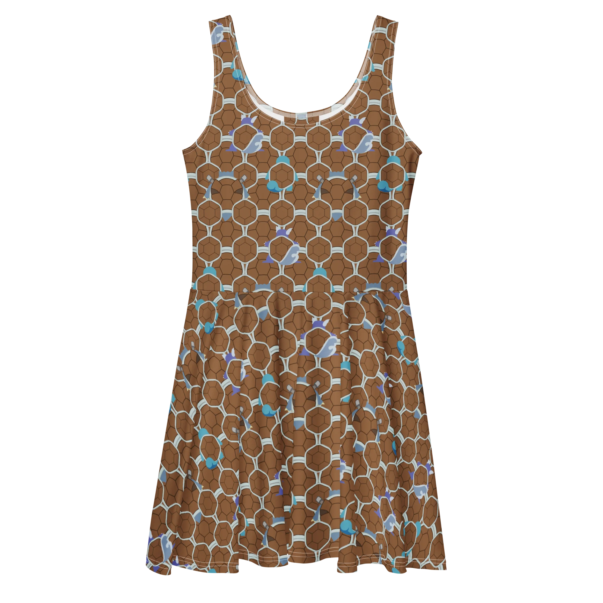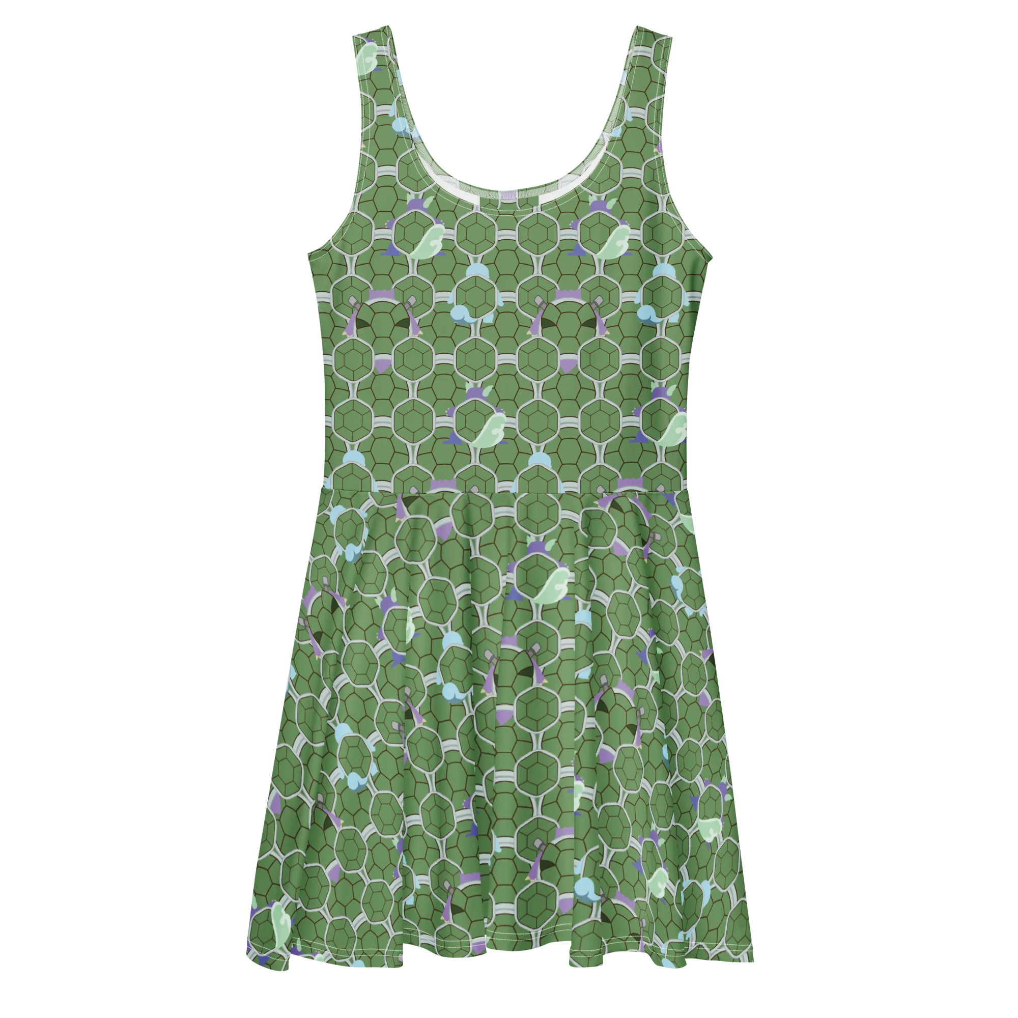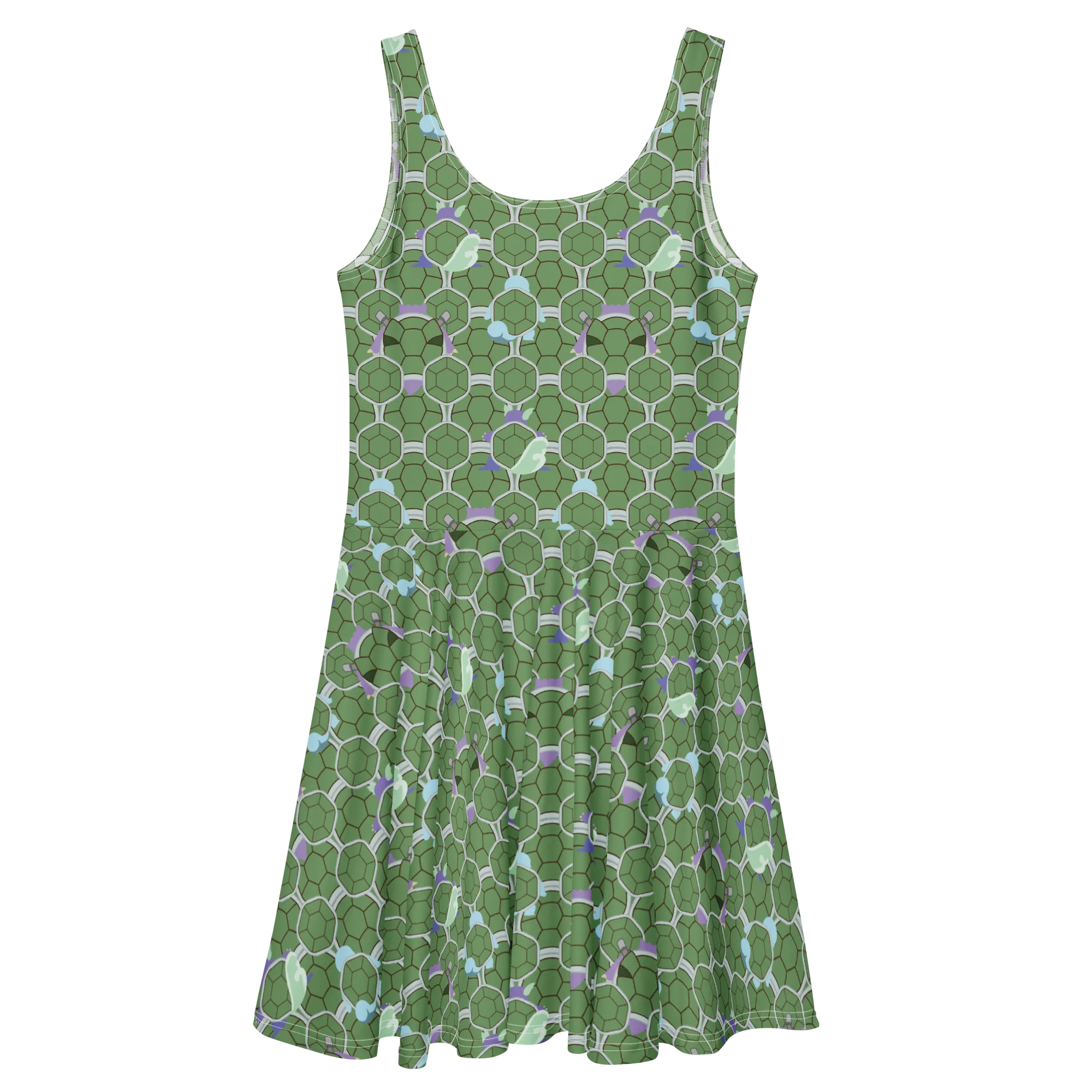 Dress to impress with this sleeveless skater dress! The soft fabric and flared skirt give it an elegant twist that brings out the intricate design with a beautiful vibrancy. This dress features familiar turtles that help you begin your journey.